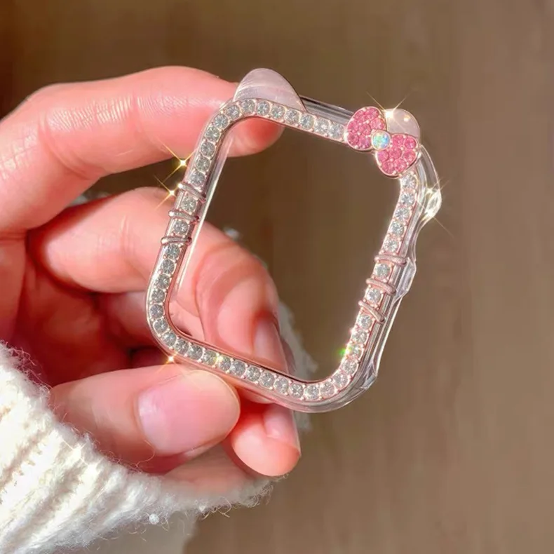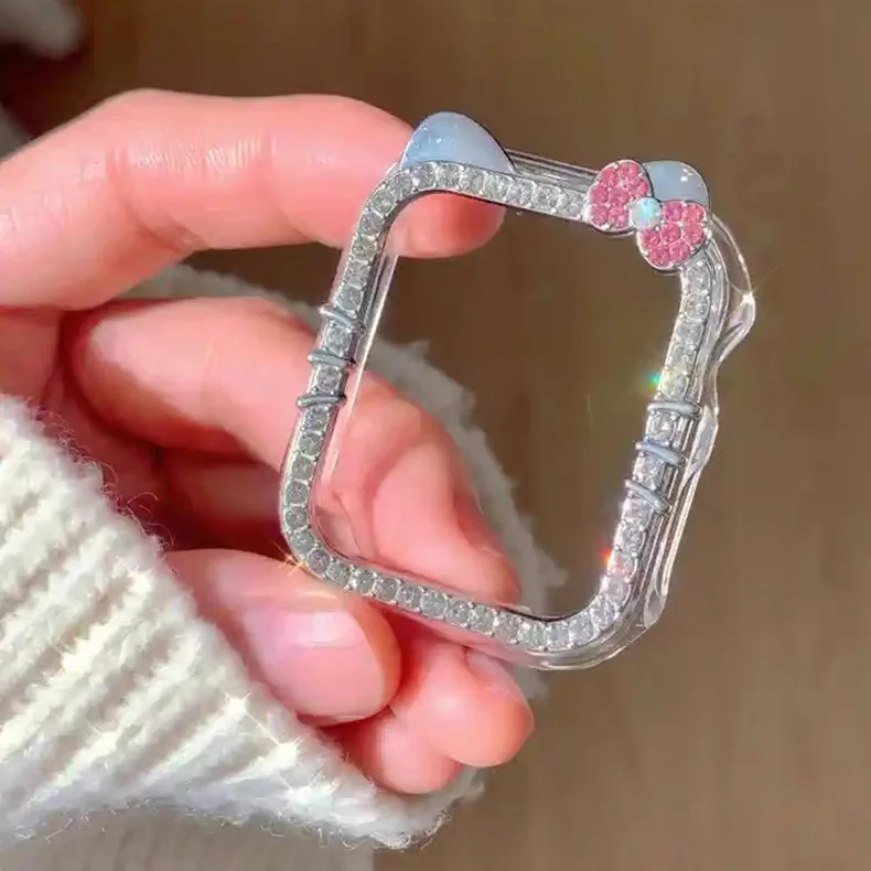 Suitable for IWatch S10/S9 Diamond KT Cat Border Shell Apple S8/7/6 Watch Scratch Protection Cover